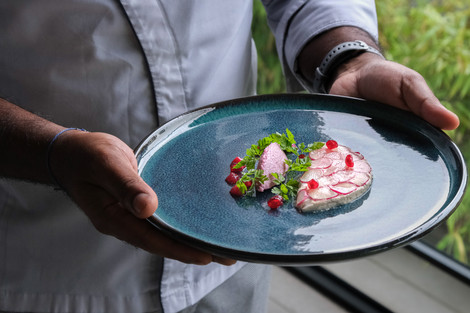 Pour l’occasion, notre chef a imaginé un menu exclusif en trois temps, entièrement inspiré par la couleur rose. Chaque assiette rendait hommage à cette teinte emblématique, tout en sublimant les produits de saison. L’entrée s’ouvrait sur une composition fraîche et délicate, aux notes fruitées et florales qui éveillaient immédiatement la curiosité. Le plat poursuivait cette expérience gourmande avec une création raffinée où le rose s’invitait à l’assiette avec élégance et subtilité. Enfin, le dessert venait clore ce voyage culinaire avec une touche douce et poétique, véritable ode à la gourmandise et à la convivialité.